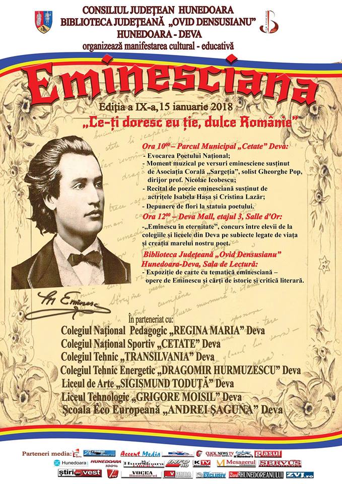Spectacol dedicat marelui poet, filozof, publicist și patriot, Mihai Eminescu, se va desfășura la Teatrul de Artă Deva luni, 15 ianuarie, de la ora 19.