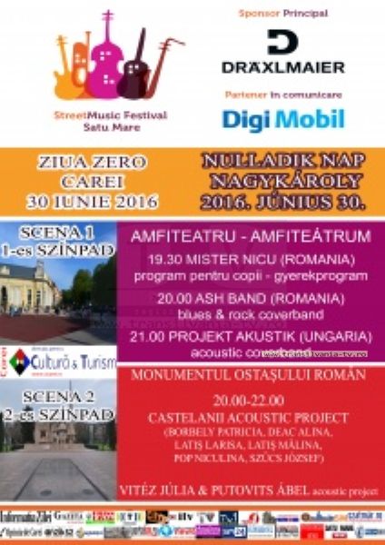 Joi, 30 iunie 2016, la Carei va avea loc Ziua Zero a festivalului de muzică de stradă Street Music Festival Satu Mare.